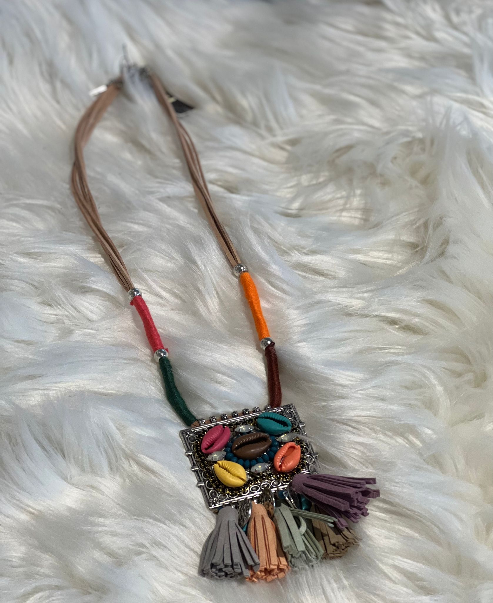 Mega ausgefalle Halskette die Bänder und Puschel sind aus Wildleder